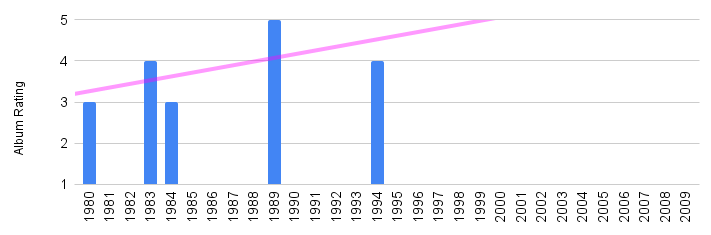 Based on all of the Donna Summer albums that we have reviewed so far, we are able to calculate her average album score as: 3.8 / 5.
